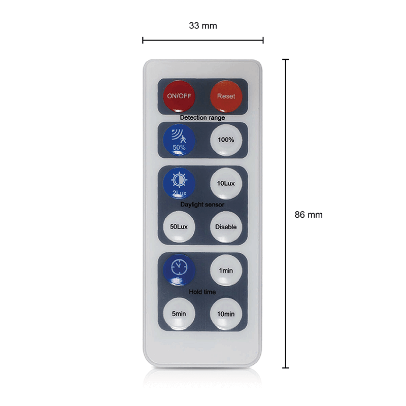 Aber das ist noch nicht alles. Mit der praktischen Tageslichttaste auf der Fernbedienung haben Sie die Möglichkeit, die Lichtempfindlichkeit des Sensors an Ihre speziellen Bedürfnisse anzupassen. Wählen Sie zwischen 2 Lux, 10 Lux oder 50 Lux, um die Empfindlichkeit des Sensors zu optimieren. Sobald der gewünschte Lux-Wert erreicht ist, wird das Licht automatisch ein- oder ausgeschaltet, was Energie spart und Ihren Komfort erhöht. Die Haisen-Fernbedienung für den Sensor wurde im Hinblick auf Ihren Komfort entwickelt. Mit einer Frequenz von 5,8 GHz können Sie sich auf eine zuverlässige Verbindung und eine präzise Steuerung verlassen. Darüber hinaus können Sie mit dieser Fernbedienung auch die Beleuchtungsdauer einstellen, wodurch Sie noch mehr Kontrolle über Ihr Beleuchtungssystem erhalten.