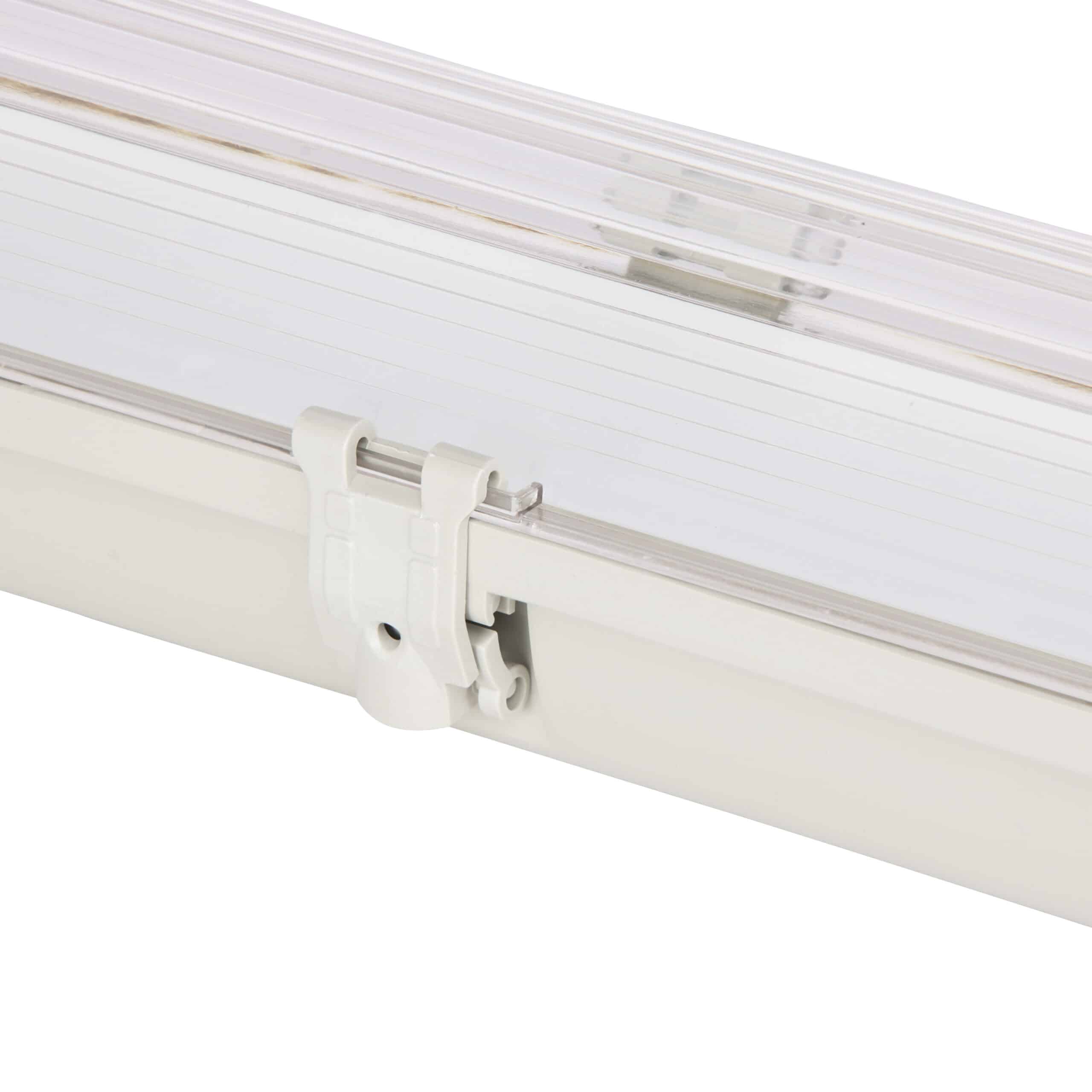Het waterdicht armatuur PORTIA 60 cm is de ideale oplossing voor zowel binnen- als buitentoepassingen. Dit compacte en robuuste armatuur is speciaal ontworpen voor één LED TL-buis van 60 cm met een G13 fitting en biedt dankzij zijn IP65-classificatie optimale bescherming tegen stof en waterstralen. Daarmee is dit LED TL armatuur 60 cm uitermate geschikt voor vochtige en veeleisende omgevingen zoals garages, stallen, parkeergarages en zelfs wasstraten.