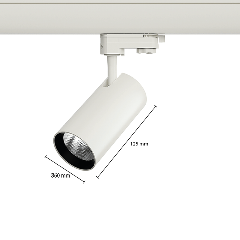 De ELARA railspot levert een lichtopbrengst van 630 lumen, aangedreven door een efficiënte 7 watt LED-lichtbron. Dankzij de 90 lumen per watt energie-efficiëntie bespaart u moeiteloos op energiekosten zonder concessies te doen aan lichtkwaliteit. Met een power factor >0.5 werkt de spot betrouwbaar binnen elk 220–240V AC lichtsysteem. De compacte afmetingen, Ø60 mm doorsnede en 125 mm hoogte, zorgen ervoor dat de railspot subtiel aanwezig is, maar toch krachtig genoeg om accenten te leggen of functioneel te verlichten in professionele omgevingen.