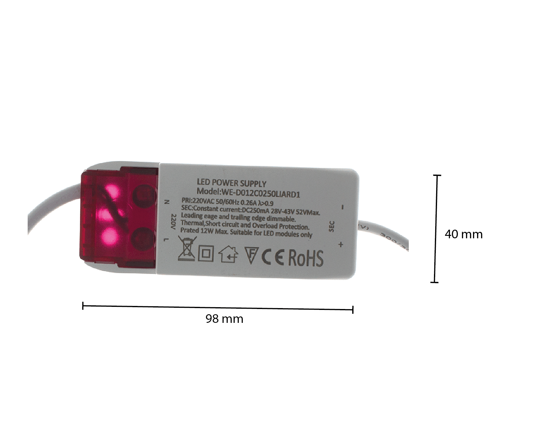 Deze LED-driver is ontworpen om te functioneren binnen een ingangsspanning van 220-240V, waardoor hij perfect is voor gebruik in de meeste Europese huishoudens en kantoren. De output spanning ligt tussen de 28 en 43V, wat zorgt voor een constante en veilige stroomvoorziening naar uw LED-lampen. Deze stabiliteit voorkomt overbelasting en verlengt de levensduur van uw verlichting, zodat u kunt vertrouwen op duurzame prestaties.