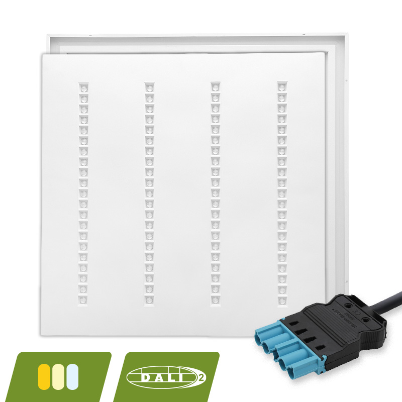 Het paneel wordt geleverd inclusief driver en 5-SWP snoer, en is volledig DALI dimbaar. Hierdoor integreert u het paneel eenvoudig in een professioneel lichtmanagementsysteem.